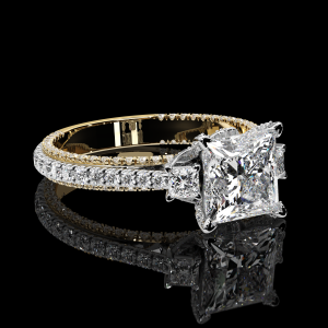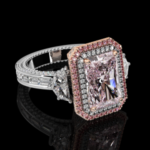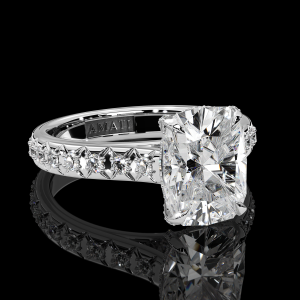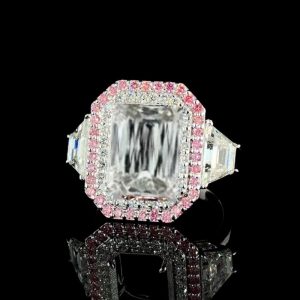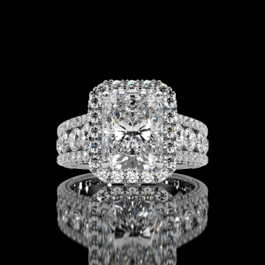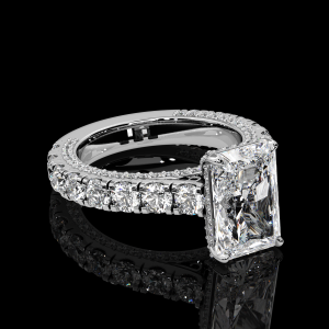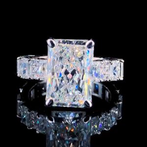 6 carat Radiant cut Diamond Ring with Round Side Stones